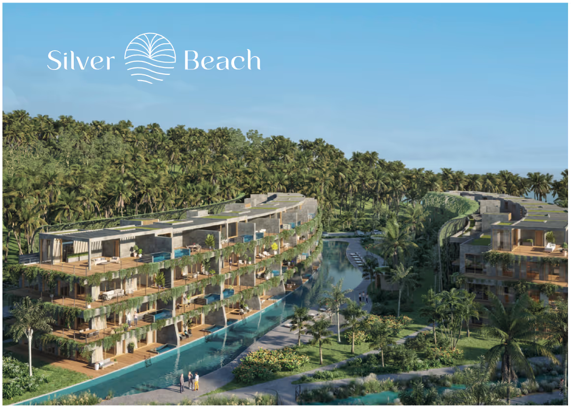 Beach club en bord de mer, hôtel boutique, zone commerciale, zone sportive, sentiers et réserve écologique avec vue sur la plage.